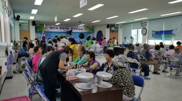 김천시의 찾아가는 현장민원실은 지역 주민들 삶의 이야기를 각종 생활서비스를 체험하면서 자연스럽게 청취하며 상담할 수 있는 행사로 주민들의 사랑방 역할과 민관의 소통창구 역할을 하고 있다.