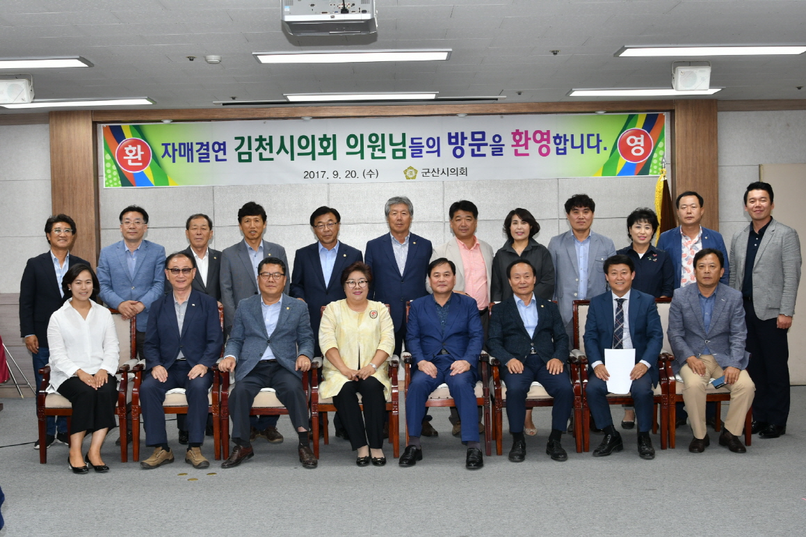 김천시와 군산시는 1998년 자매결연을 맺었으며, 김천시의회와 군산시의회는 지난 2016년 6월 8일 두 도시의 상생발전을 위해 더욱 활발한 교류와 협력을 약속하며 시의회 차원의 자매결연을 맺은 바 있다.