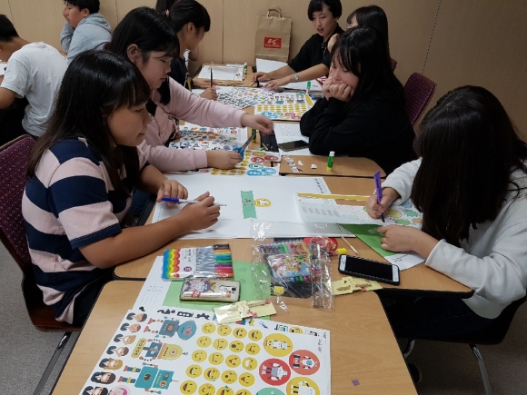 | 인포그래픽 교육 및 실습시간에는 학생들이 삼삼오오 모여 조별로 요지를 작성하고 인포그래픽을 만들며 즐거운 시간을 보냈다. 친구들끼리 의논하여 함께 주제를 정하고 자료를 요약하고, 이를 시각화하기 위해 그림자료를 붙이고 도표를 만드는 등의 과정을 통해 서로 의견을 나누며 협동심을 키우는 시간도 가졌다.