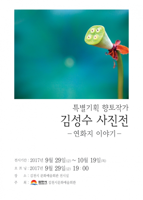 김천시 문화예술회관(관장 장귀희)에서는 오는 9월 29일부터 10월 19까지 21일간 향토작가 김성수 사진작가를 초청하여 “연화지 이야기”를 테마로 하는 사진전을 개최한다.