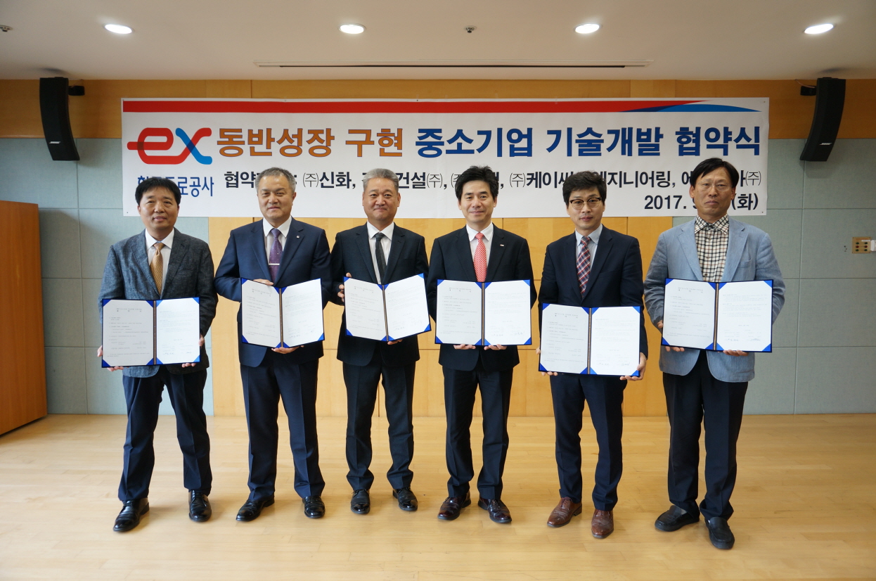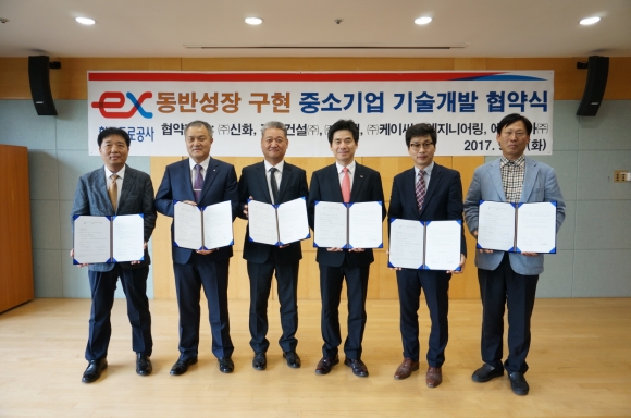 | 한국도로공사(사장 직무대행 신재상)는 26일 도로교통연구원에서 ㈜산맥 등 중소기업 5곳과 도로교통분야 신제품․기술 개발 지원계약을 체결했다고 밝혔다.