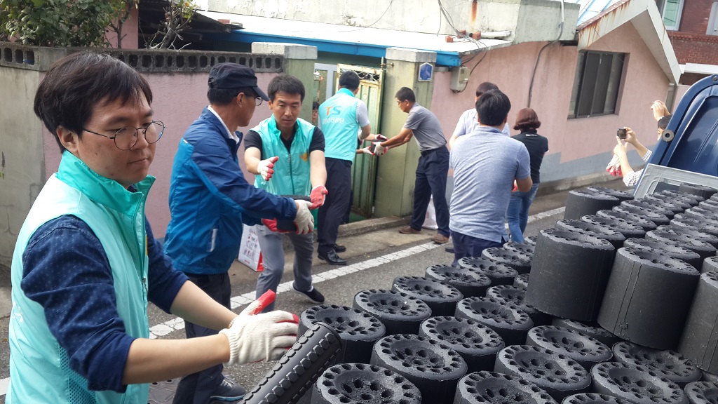 | 2017년 9월 26일(화) 대곡동지역사회보장협의체(위원장 정문호)와 교통안전공단 봉사단(부장 김용달)에서는 독거노인 세대와 장기질환으로 거동이 불편한 가정 3곳에 연탄 1,000장을 배달했다.