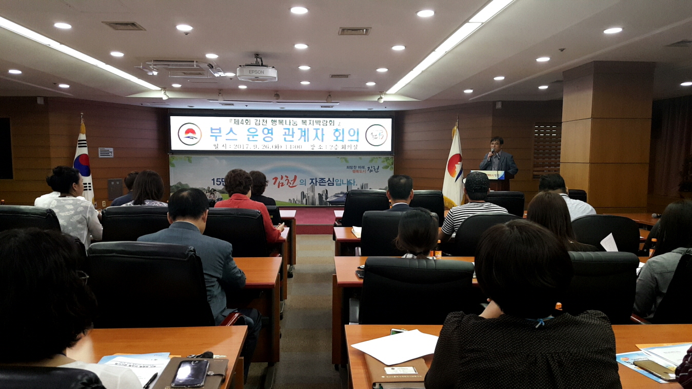 | 김천시지역사회보장협의체(박보생 위원장, 이기양 공동위원장)는 지난 9월26일 시청 2층 회의실에서「제4회 김천 행복나눔 복지박람회」참가기관을 대상으로 부스 운영 관계자 회의를 개최하였다.