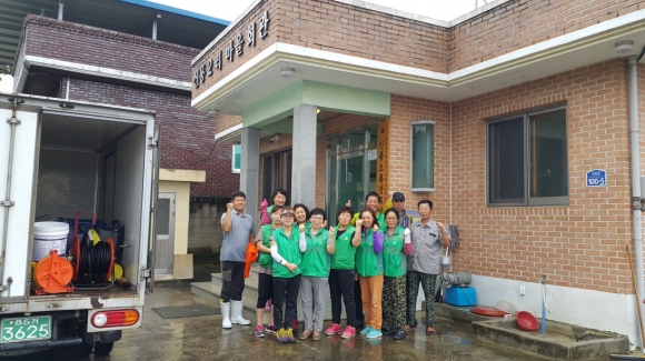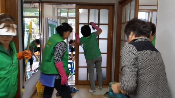 27일 비가 내리는 와중에도 새마을협의회 회원 20여명이 참여하여 경로당 안팎 묵은 때를 청소하고 가재도구를 정리하는 등 내집처럼 깨끗하게 쓸고 닦고 하였다.