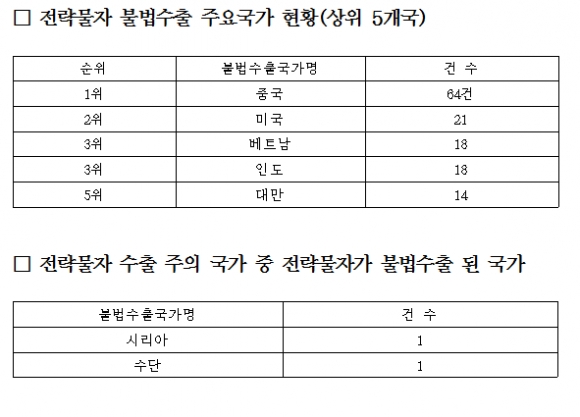 더 큰 문제는 ‘국제평화 및 안정유지 등 의무이행을 위한 무역 특별고시’에서 전략물자 수출제한을 하고 있는 시리아, 수단에도 전략물자가 불법수출 됐다는 점이다. 시리아 등 중동의 국가는 북한과의 무기거래가 발생하는 곳으로 우리나의 전략물자가 북한으로 넘어갈 가능성이 높아 우리나라의 전략물자가 오히려 우리나라를 위협하는 상황에 이르게 한 것으로 조사됐다.