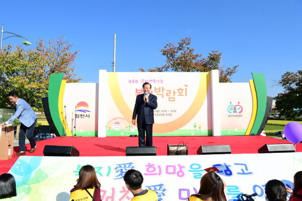 『제4회 김천 행복나눔 복지박람회』는 김천시가 주최하고 김천시지역사회보장협의체가 주관한 행사로 김천시지역사회보장협의체 이기양 공동위원장의 개회선언을 시작으로 54개 복지관련 기관이 참여한 가운데 체험, 상담, 전시부스와 함께하는 마당, 공연마당, 깜짝벼룩시장 및 프리마켓으로 운영되었다.