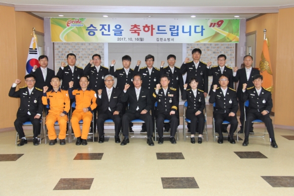 | 김천소방서(서장 백남명)는 10월 17일 오전 소방공무원 인사발령에 따른 승진자 13명에 대한 임용장 수여식을 가졌다.