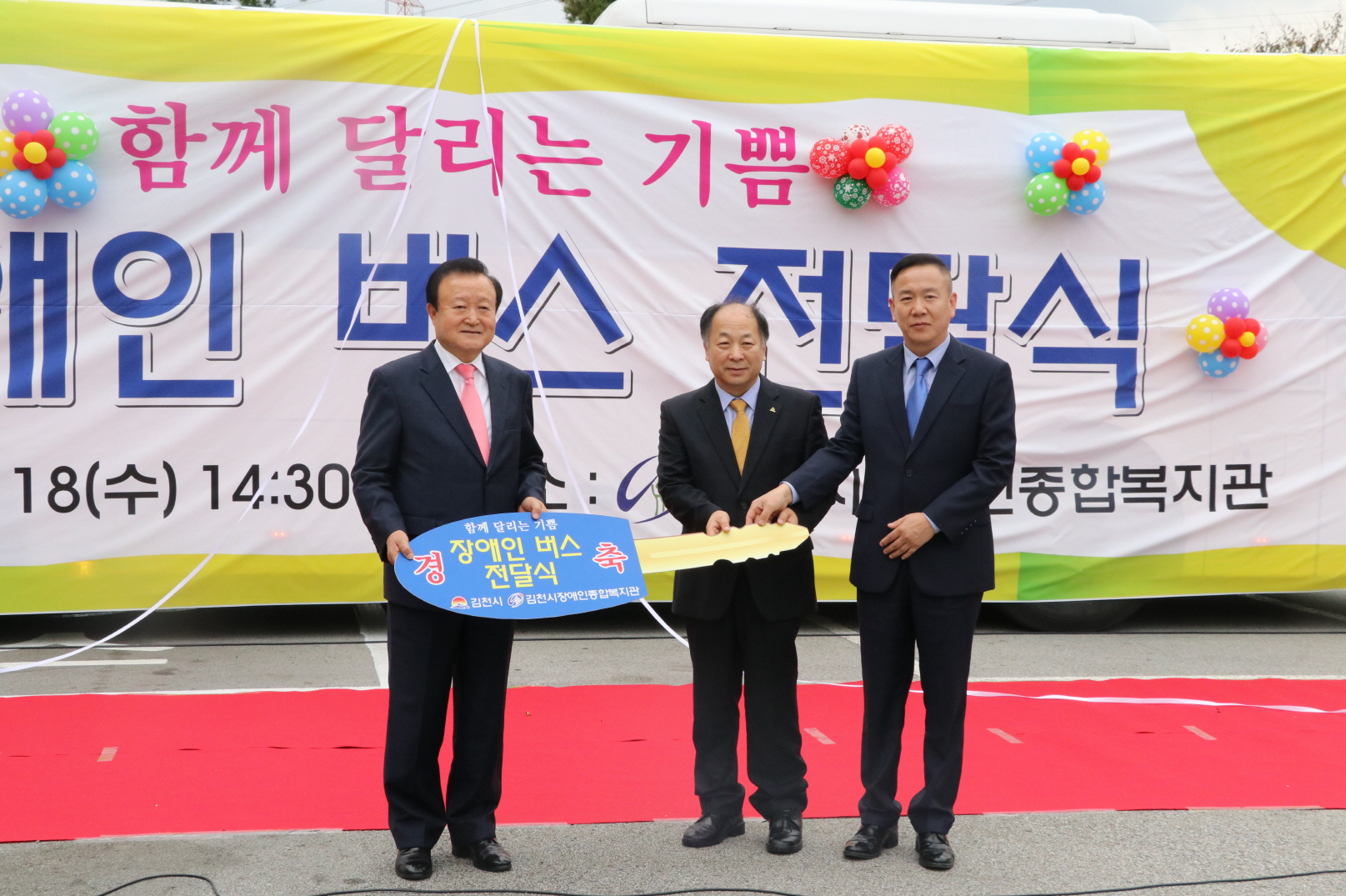 장애인 버스 전달식에는 박보생 김천시장, 김세운 김천시의회 부의장, 김응규 경북도의회 의장, 나영민 예산결산특별위원장, 백성철 의회운영위원장, 이선명 예결산특별위 간사, 전계숙 산업건설위 간사, 김병철 시의원, 박희주 시의원, 김천시 각 장애인단체장, 복지관 운영위원, 지역 장애인 및 지역주민들이 참석하여 축하해주었다. 이 날 행사에서는 차량 열쇠 모형 전달과 제막식, 시승식 및 휠체어리프트 시범을 실시하였다.