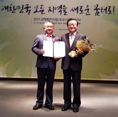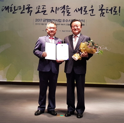 - 지역균형 발전사업 평가 시상식에 우수기관 2년 연속 선정 -