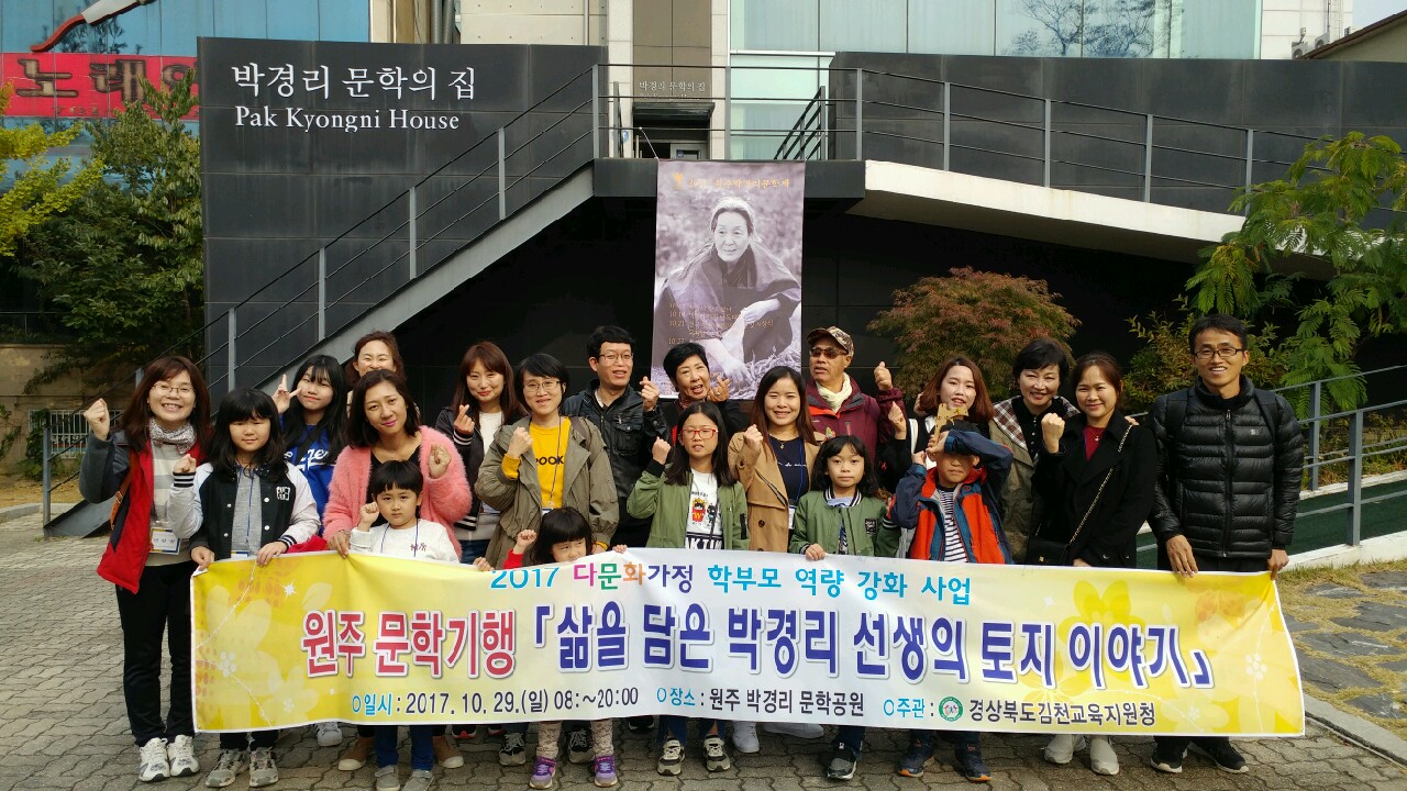 이번 문학기행은 다문화가정 학생과 학부모님들께 근대 한국 사회의 모습을 고스란히 담고 있는 대하소설 ‘토지’로 유명한 한국의 대표 작가 박경리 선생의 문학관과 원주문화재단의 그림책 전시회를 돌아보며 한국의 정서와 문화를 체험할 수 있는 기회를 주고자 실시하였다.