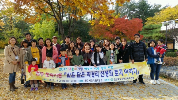 | 경상북도김천교육지원청(교육장 신정숙)은 10월 29일(일) 강원도 원주 박경리 문학의 집에서 김천 한울림 독서클럽의 다문화가정 학생과 학부모님 30여명을 대상으로 문학기행을 다녀왔다.
