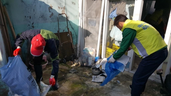 또한 다른가구는 기초생활수급, 거동이 불편한가구로 집 정리를 못해 각종 쓰레기와 정리되지 않은 옷가지들과 배전시설에 대해서 재능기부봉사단이 청소 및 수리로 인해 쾌적한 주거환경을 제공하였다.