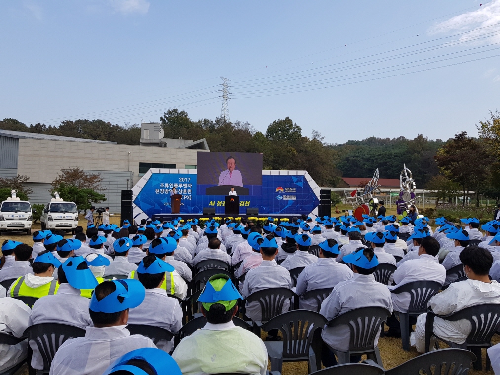 | 김천시는 2017년 10월 26일(목) 농업기술센터 잔디광장에서 고병원성 조류인플루엔자의 발생에 대비하여 실제 상황발생시 신속하고 체계적인 현장대응을 위해 가상방역훈현(CPX)을 실시하였다.
