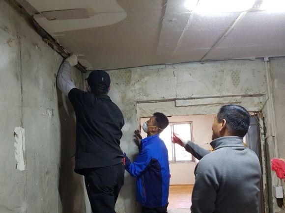 대상가구는 대항면 대룡1리(반곡)에 거주하고 있는 독거노인으로 집이 노후되어 겨울철 결로현상이 심하고 천장의 단열재가 내려앉는 등 주거 내‧ 외부의 개선이 절실한 가정이었다.