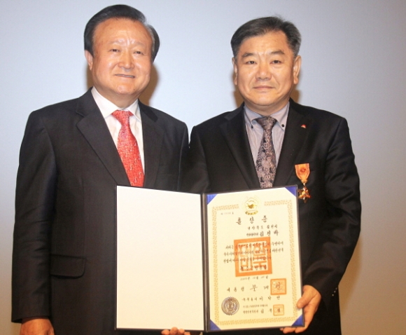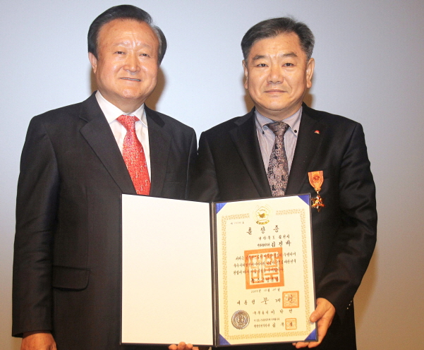 |  | | | ⓒ 박보생시장과 김진하과장 | | 김천시청 안전재난과 김진하(지방시설사무관) 과장이 지난11월1일 정례석회에서 녹조근정훈장을 수훈했다. 김진하 과장은 1979년 4월 공직생활을 시작해 현재 안전재난과장에 이르기까지, 재해예방과 복구사업, 여름철·겨울철 자연재난 대비와 구제역 ·AI 재난대책본부 운영과 비상근무 등 재해대책 업무에 남다른 열정과 책임감으로 최선을 다해 행정을 실천한 결과, 그 공적을 인정 받아 녹조근정훈장을 수상하게 됐다. 특히, 2002년 태풍 루사, 2003년 태풍 매미 내습 시 인명피해 예방과 공공시설 수해복구에 크게 기여하였다. 2016년부터 현재까지 건설안전국 안전재난과장으로 근무하면서 국가안전대진단 총괄 부서장으로서 재해취약지구, 국가기반 통신·전산망 등 총 11개 분야, 1,279개 시설을 점검하여 재해예방, 대비 업무에 철저를 기하였으며, 구제역 및 AI 방역 등 사회 재난과 폭설, 가뭄, 강풍, 호우 등의 자연재난 예방 대비 업무에 헌신하고 있다. 그동안 주민복지증진과 건설교통업무발전, 환경행정발전 등에 기여한 공로를 인정받아 세 차례의 장관급 표창을 수여받은 바 있는 김과장은 이번 훈장을 수여받으며, 앞으로도 철저한 정기점검을 통해 시설물 및 상황관리에 만전을 기하고, 재해예방을 통해 시민들의 생명과 재산보호를 위해 최선을 다하겠다고 전했다 |