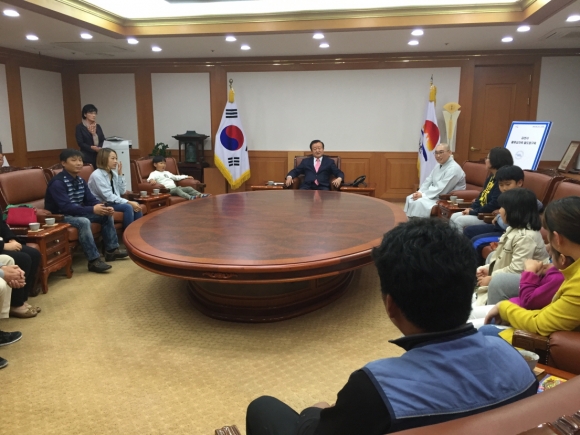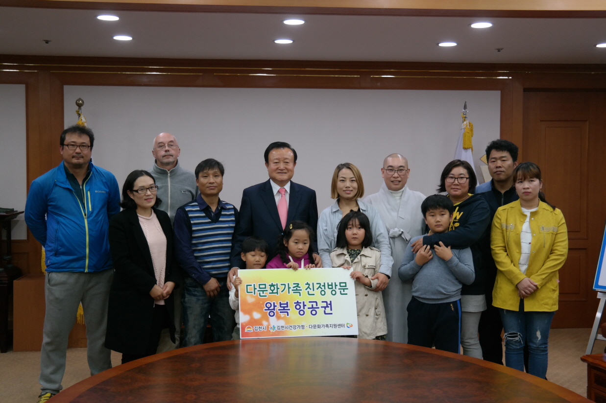 | 김천시(시장 박보생)는 11월 6일 2층 접견실에서 중국과 베트남, 러시아로 친정방문을 떠나는 4가정의 다문화 가족들을 환송하기 위해 간담회를 가졌다. 김천시 ‘다문화가족 친정방문 사업’은 2009년도부터 9년째 이어오고 있으며, 친정에 2년 동안 가지 못한 사람 중 친정방문을 희망하는 결혼이주여성을 선정하여 왕복항공료와 여행자보험을 지원하는 사업이다.