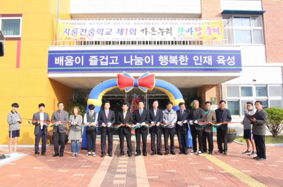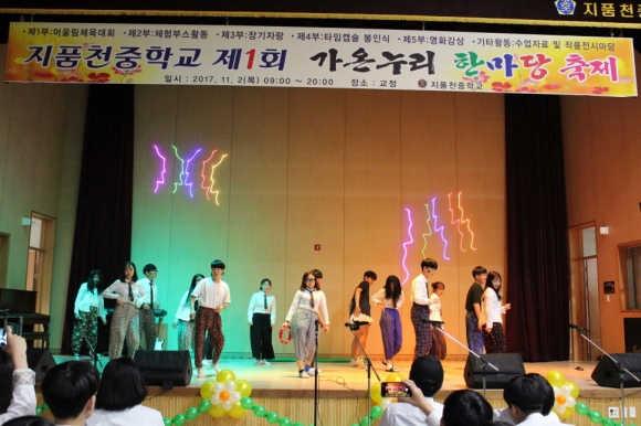 | 지품천중학교는 지난 11월 2일 전교생 및 학부모, 지역 주민이 참석한 가운데 2017학년도“제1회 가온누리한마당 축제”를 개최하였다.