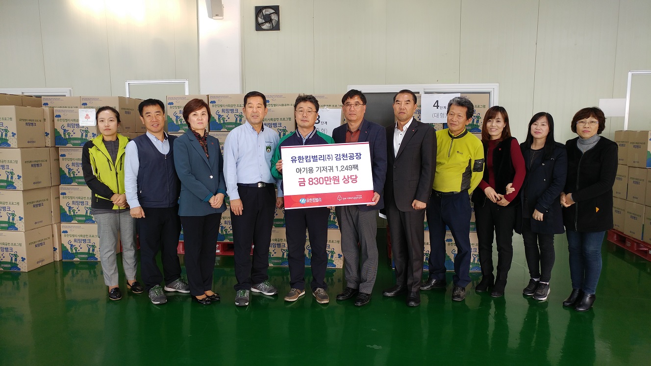 유한킴벌리(주)김천공장 후원품(기저귀) 전달