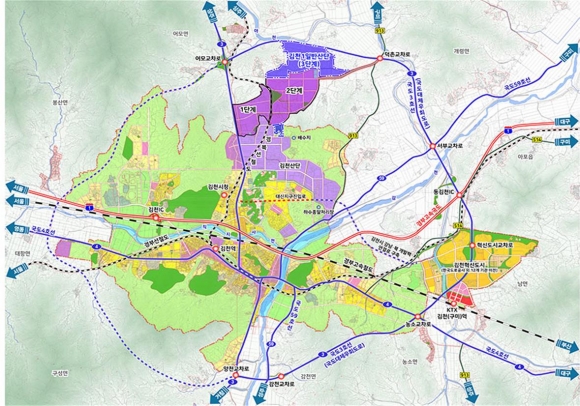 | 이번 3단계 사업계획 승인은 인․허가 협의과정에서 농지보전방침에 따른 사업구역 조정 등 주민 민원도 일부 있었지만 박 보생 김천시장의 탁월한 행정 추진력과 전 공무원들이 일심동체가 되어 발로 뛰는 적극 행정을 추진한 결과로서, 김천시는 승인․고시가 완료되어 감정평가 결과가 통보 되는대로 소유자와 본격적인 보상협의 및 공사 착수에 들어갈 예정이다.
