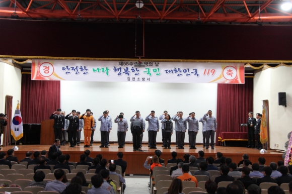 | 김천소방서(서장 백남명)는 11월 9일(목) 김천시 평생교육원 대강당에서 제55주년 소방의 날 기념행사를 개최하였다.
