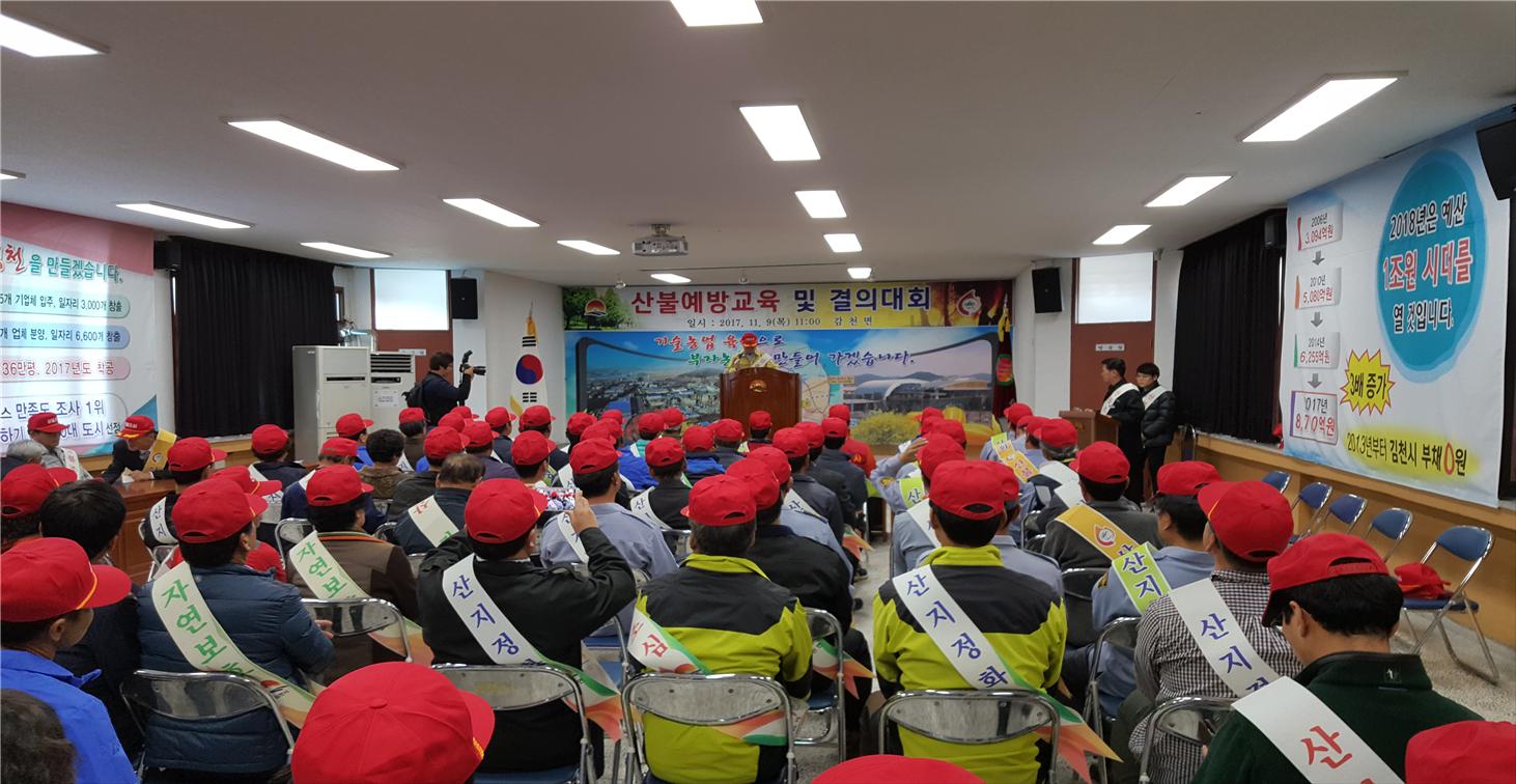 | 김천시 감천면에서는 2017년 11월10일 감천면 사무소 2층 회의실에서 관내 기관단체장, 각 마을이장, 새마을지도자·부녀회장, 의용소방대, 산불감시원, 감천면 발전협의회 및 체육회원 등 125명이 참석한 가운데‘감천면 2017년 가을철 산불예방교육 및 결의대회’가 개최됐다.