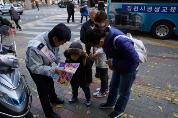 |  | | | ⓒ 김천내일신문 | | 김천경찰서(서장 김영수)는 지난11월15일‘아동학대 예방의 날’을 기념하여 유관기관과 함께 김천시외버스터미널 일대에서 김천 시민들을 대상으로 아동학대 예방 홍보 캠페인을 실시했다. 신수익 여성청소년과장은“아동학대는 피해자가 아직 외부에 도움을 요청할 능력이 없다는 점에서 다른 범죄에 비해 더욱 주변인의 역할이 중요하다.”고 강조하며 아동학대 의심사례가 있다면 주저 말고 112로 신고할 것을 당부했다. 아울러 김천경찰서는 11월 1일부터 연말까지 아동학대 예방 집중 추진기간을 운영하며, 아동학대 인식 개선 및 신고 활성화를 위한 홍보활동과 피해아동 보호에 더욱 힘쓰겠다고 밝혔다. |