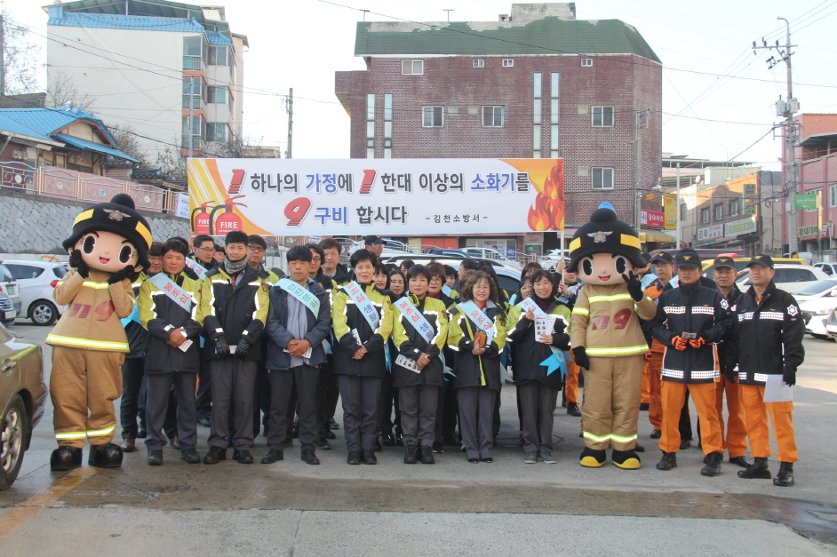 주요 홍보내용으로는 다중밀집장소인 재래시장 및 김천역 등 소방통로 확보를 위한 길 터주기, 겨울철 화재예방, 주택용 소방시설 설치 홍보 등이다.