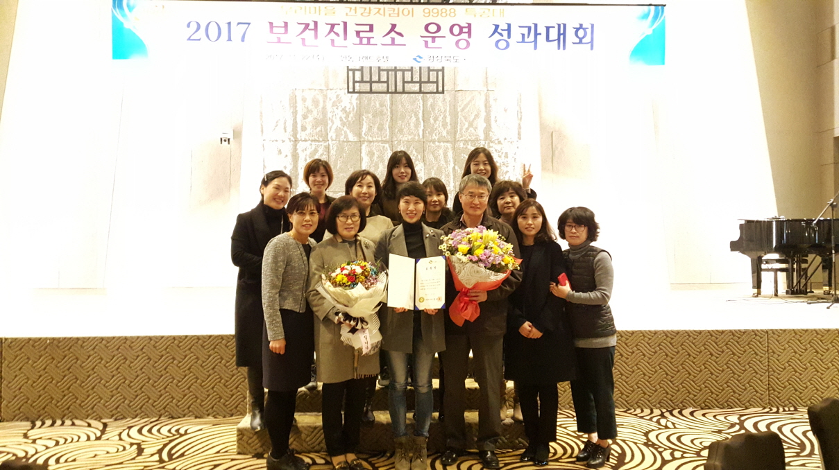 | 김천시(시장 박보생)는 2017년 11월 22일 안동그랜드호텔에서 개최된『보건진료소 운영 성과대회』에서 내실 있는 보건진료소 운영으로 연화보건진료소(안차희주무관)가 최우수 개인 표창을 수상하였다