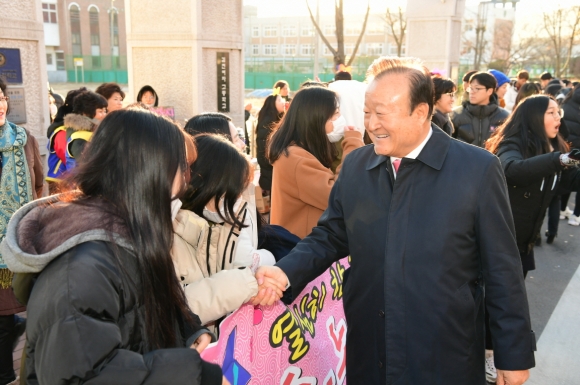 | 박보생 김천시장은 올해도 빠짐없이 관내 각 고등학교 시험고사장을 방문하여 포항 지진의 여파로 변경된 시험일정에 적응하느라 그 동안 힘든 시간을 보냈을 수험생들에게 “시험은 누구에게나 긴장되고 떨리는 것이니 너무 당황하지 말고 지난 3년간 쌓아온 내공을 마음껏 발휘하여 원하는 대학에 꼭 합격하기를 바란다.”며 격려의 말을 전했다.