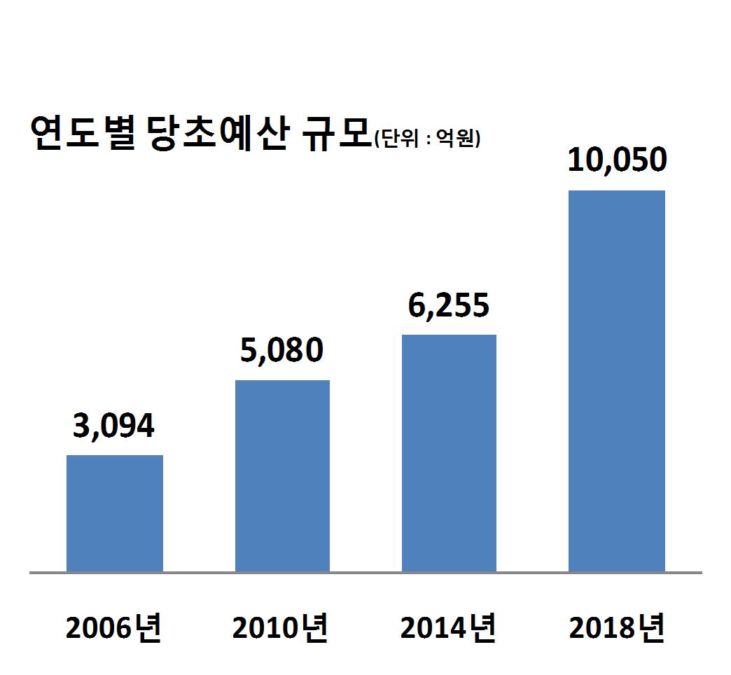 일반회계는 2017년 6,815억원보다 17.59% 증가한 8,014억원, 특별회계는 7.44% 증가한 2,036억원으로 편성했다. 이는 박보생 시장이 민선4기 시장으로 처음 취임한 2006년도 당초예산 3,094억원 보다 무려 3배 이상 증가한 금액으로 공채발행이나 차입이 거의 없는 이른바, 건전재정이 확보된 상태에서 이루어져 그 의미가 크다.