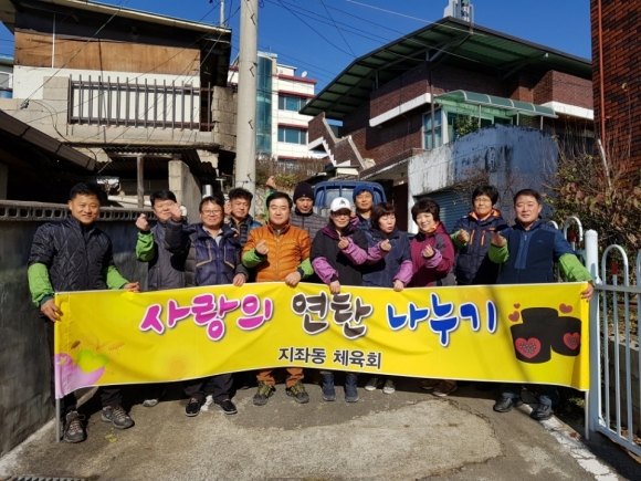 이날 체육회 회원들은 겨울 한파속에서 소외되어 어렵고 외롭게 생활하고 있는 장애인, 독거노인 3가구를 직접 방문하여 장당 3.6kg 무게의 연탄을 4∼5씩 직접 짊어지고 골목골목에 있는 어르신들의 집안 연탄 창고까지 직접 배달했다. 지좌동에는 현대식 고층 아파트 등 신축건물이 많이 들어섰지만, 일부 가구는 아직도 열악한 환경에서 연탄에 의존하며 겨울을 나고 있다.