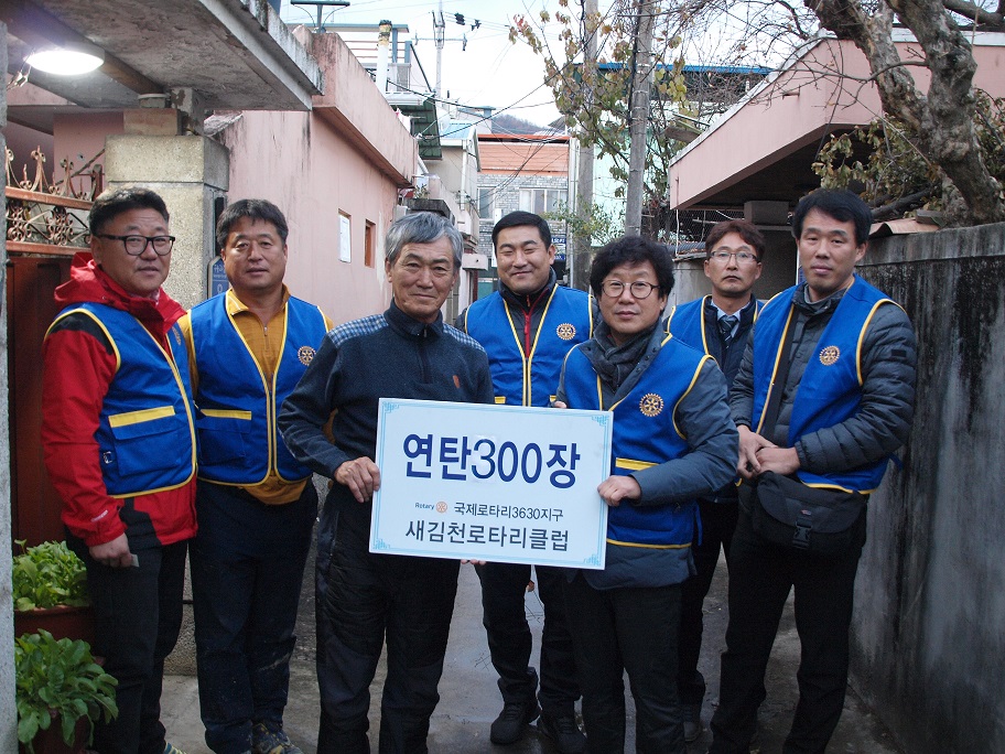 이번 저소득 연탄지원 행사는 새김천로타리클럽이 지역사회의 어려운 이웃을 위한 봉사활동의 일환으로, 모자가정 장애가정 독거노인가정에 회원들의 정성을 모은 연탄을 골고루 전달했다.