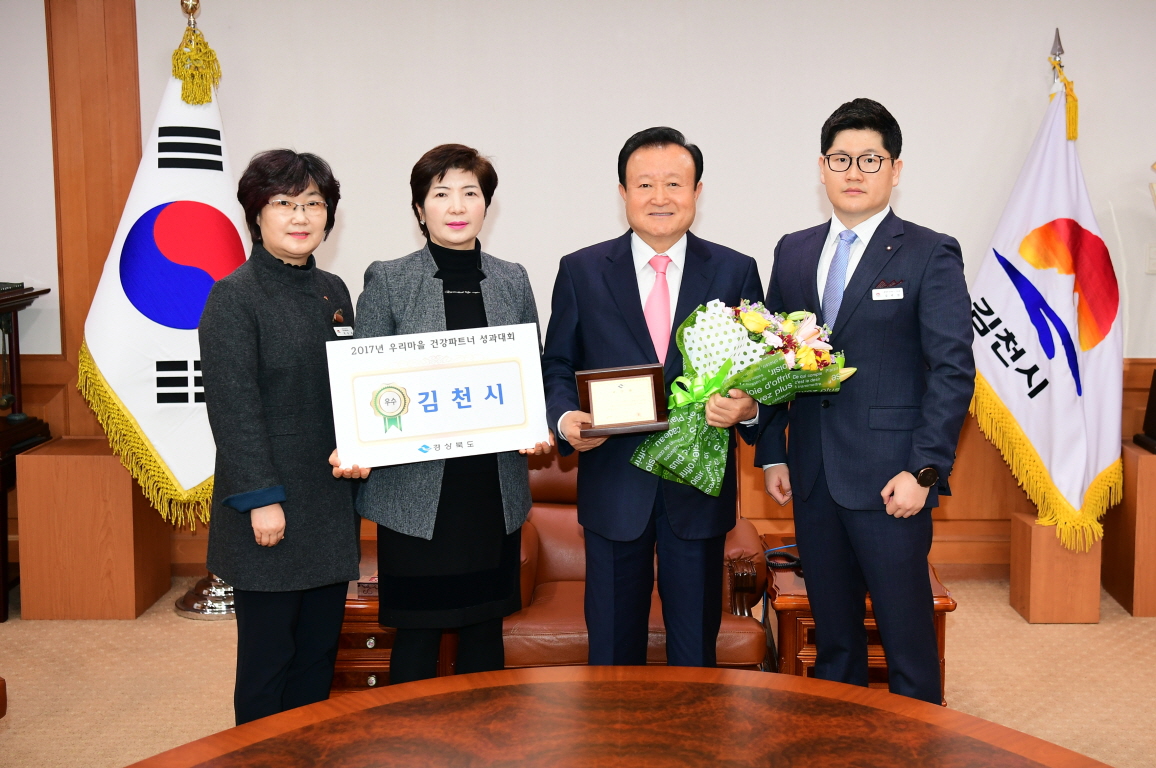 | 김천시(시장 박보생)는 최근 도내 25개 보건소를 대상으로 실시한 ‘2017년 우리마을 건강파트너 성과대회’에서 도내 우수기관으로 선정됐다.