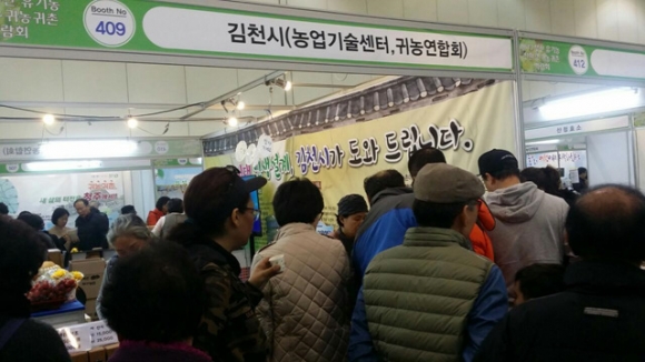 | 이날 다른 지자체 부스에 비해 월등히 많은 인원이 참가한 김천시 부스에서는 예비 귀농인들에게 김천시의 문화, 귀농 조건, 차별화된 정책을 물론 귀농귀촌 시 겪게 될 수 있는 다양한 문제점에 대해 열정적으로 컨설팅을 하여 행사 담당 사무국에서도 감사의 말과 호평을 받았다.