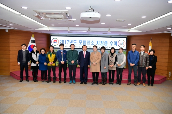 | 김천시(시장 박보생)는 지난 12월 6일(수) 위생관리상태 등이 우수하여 올해 신규 모범음식점으로 선정된 12개 일반음식점 영업주에게 모범음식점 지정증을 수여하였다.