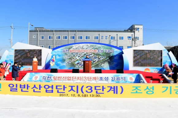 | 김천시(시장 박보생)가 정부 정책 5개년 계획에 의거 일자리 창출 및 지역경제 활성화를 위해 시정의 최우선 목표로 추진 중인 김천 일반산업단지 3단계 조성사업의 기공식이 2017년 12월 8일 어모면 남산리 일원에서 박보생 김천시장, 우병윤 경제부지사, 배낙호 시의회의장, 김응규 도의회 의장 등 각급 기관단체장과 지역주민 등 1,500여명이 참석한 가운데 기공식을 개최하였다.