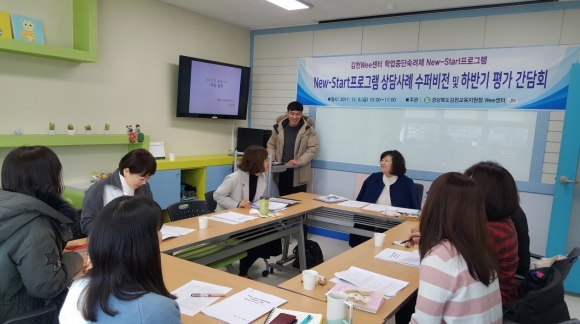 | 경상북도김천교육지원청(교육장 신정숙) Wee센터는 12월 8일(금) 김천교육지원청 Wee센터 소통방에서 New-Start프로그램 전임상담원, Wee센터 전문상담인력을 대상으로 상담사례 수퍼비전을 운영했다.