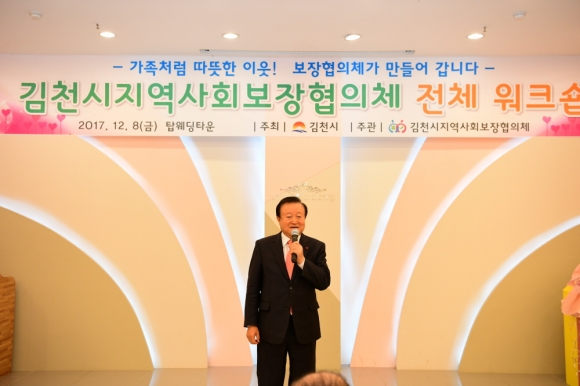 | 김천시지역사회보장협의체(위원장 박보생, 공동위원장 이기양)는 지난 12월 8일 탑웨딩에서 김천시와 읍면동지역사회보장협의체, 읍면동복지담당공무원들을 대상으로『김천시지역사회보장협의체 전체 워크숍』을 개최하였다.