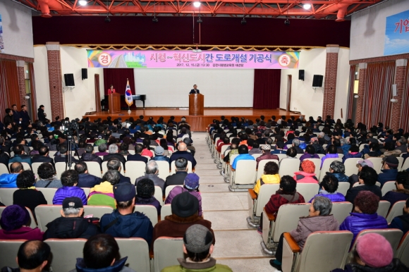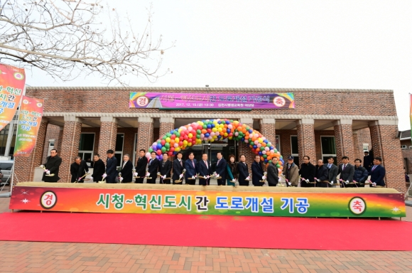 | 김천시(시장 박보생)는 12월 15일, 대광동(김천시평생교육원)에서 박보생 김천시장, 배낙호 김천시의회의장, 김응규 경북도의회 의장 등 각급 기관단체장과 지역주민 등이 참석한 가운데「시청∼혁신도시 간 도로개설 기공식」을 개최했다.