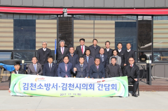 | 김천소방서(서장 백남명)는 12월 19일 신음동 한 식당에서 김천소방서 이전 신축 추진사항 등과 관련하여 김천시의원들과 간담회 자리를 가졌다. 이 자리에는 김천시의회 의장 배낙호 의원을 포함한 15명의 시의원과 소방서장 및 소방공무원 등 총 32명이 참석하였다.