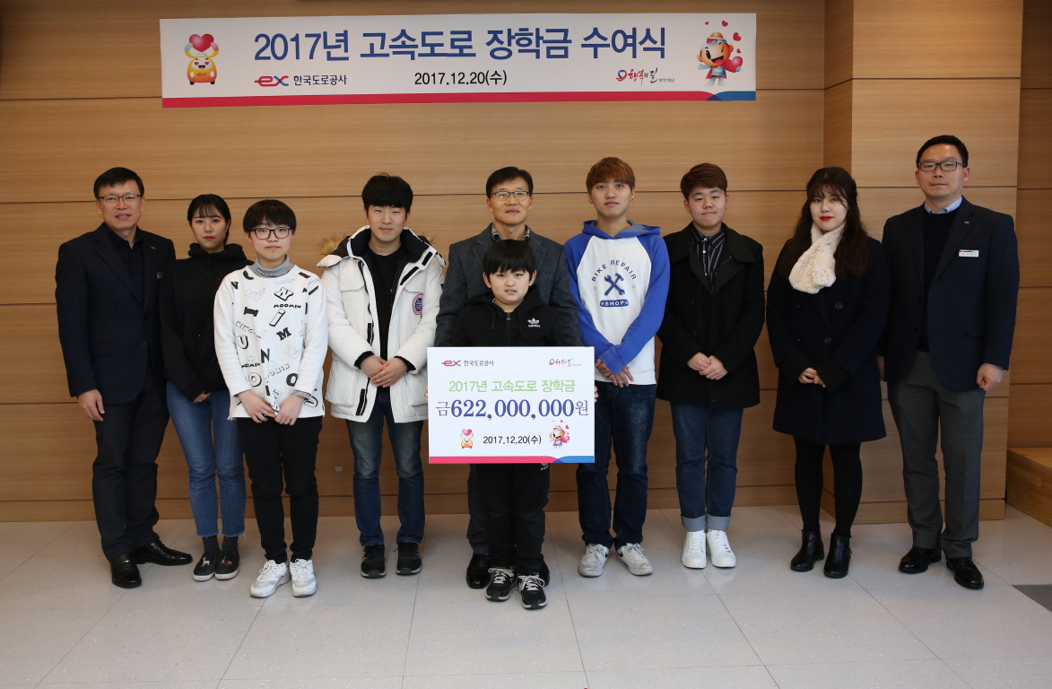 | 한국도로공사(사장 이강래)는 20일 고속도로 교통사고 가정의 청소년 218명에게 모두 6억2천2백만원의 ‘고속도로 장학금’을 전달했다고 밝혔다. 지난해 4억2백만원보다 55% 증가한 금액이다.