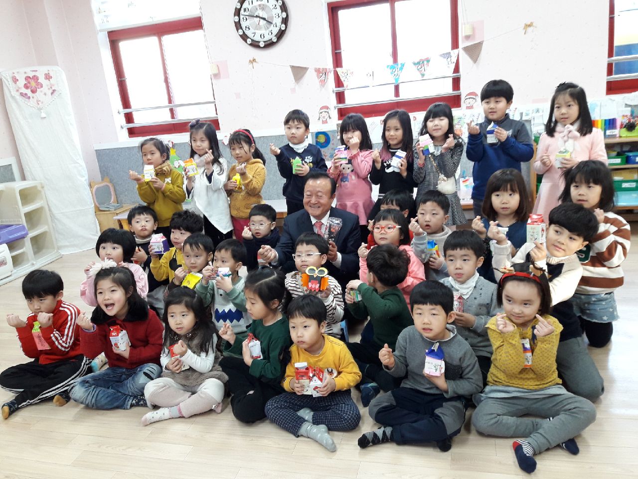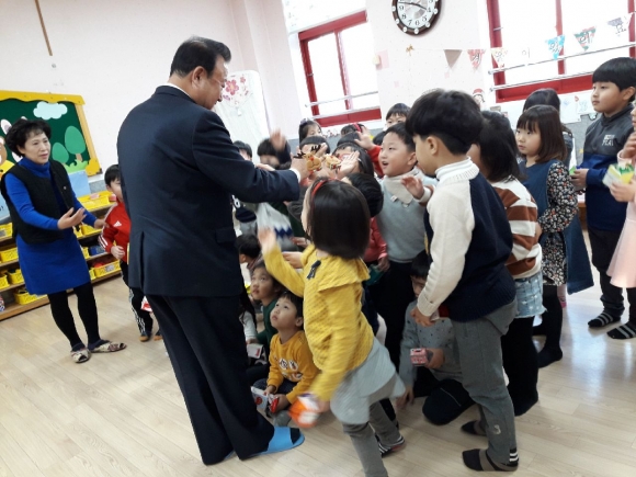 | 박보생 김천시장은 "고사리 손으로 모은 원생들의 아름답고 가치로운 일이 경기불황 등으로 찬바람이 부는 사랑의 온도탑 수은주에 온기를 불어 넣고 나눔문화가 확산되어 김천시민 모두가 함께 행복한 도시를 만든다”며 원생들과 즐거운 시간을 가졌다. |