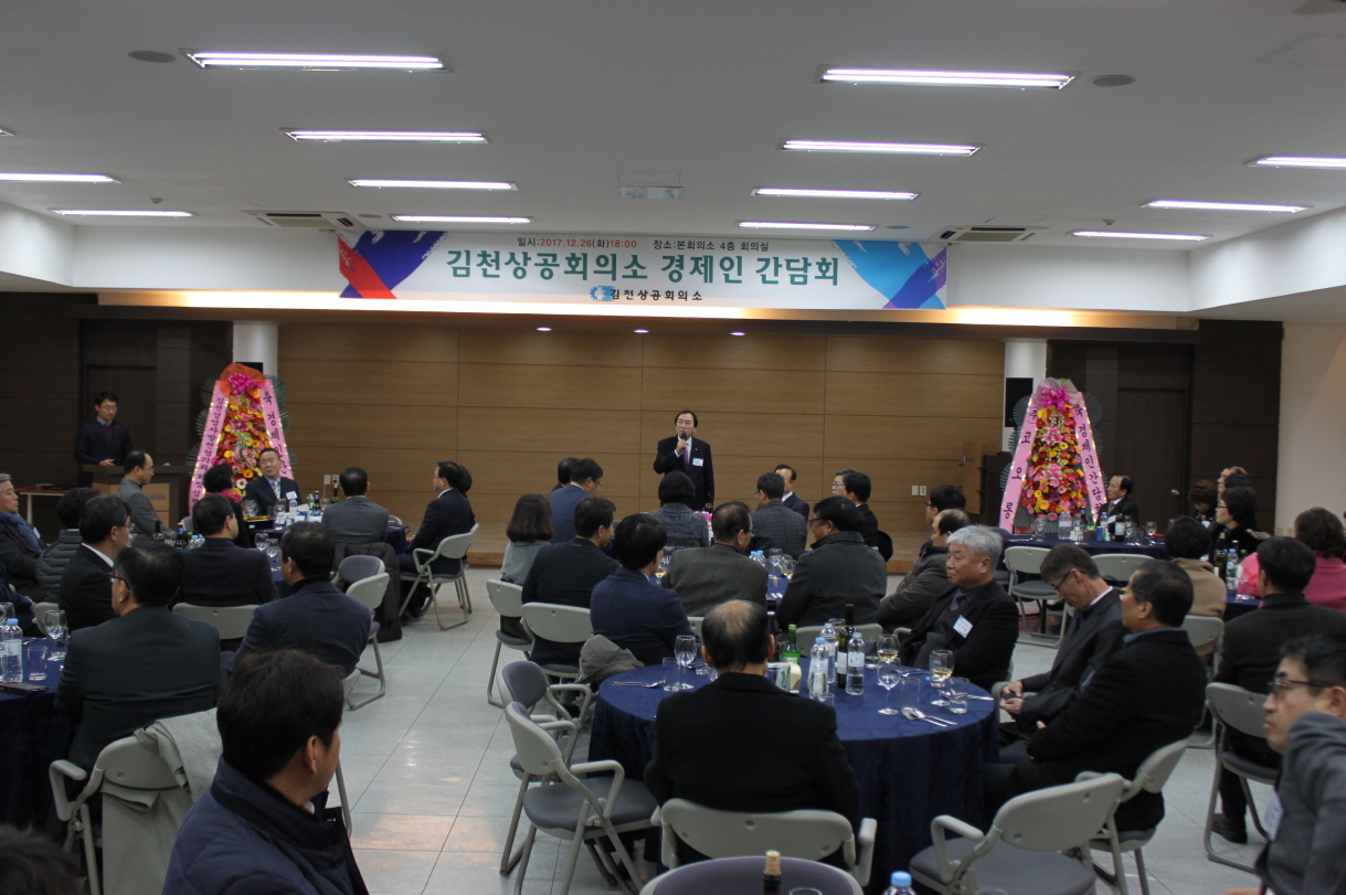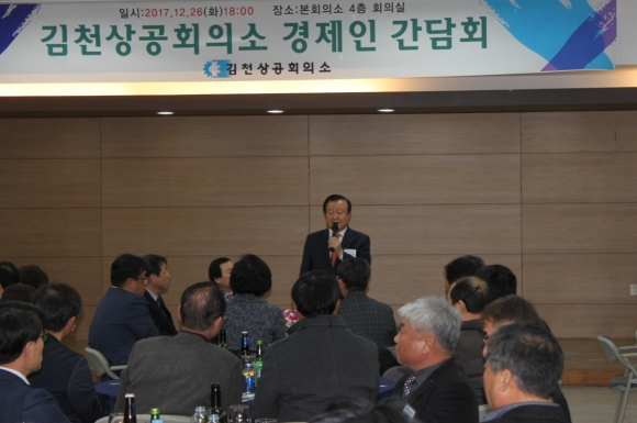 | 김천상공회의소(회장 김정호)는 지난 12월 26일 오후 6시 본회의소 4층 대회의실에서 김천 경제인 간담회를 개최했다.
