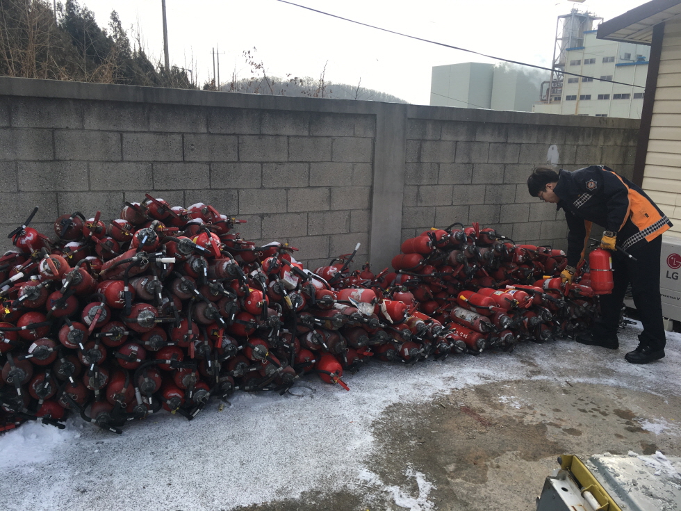 | 김천소방서(서장 백남명)는 지난 1월 9일 소화기 폭발로 인한 안전사고 방지를 위해 관내 가압식 소화기 및 노후소화기 600여개를 수거하여 폐기업체를 통해 폐기했다고 전했다.