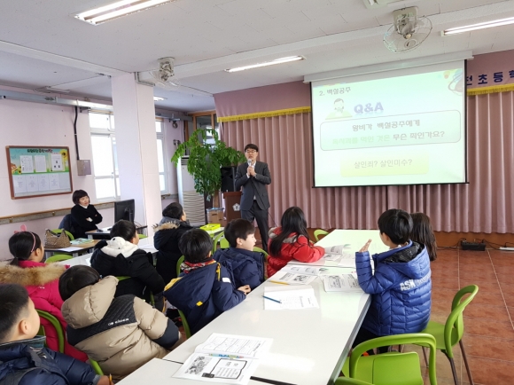 | 대한법률구조공단(이사장 이헌) 법문화교육센터는 겨울방학을 맞이하여, 1월 11일 경북 김천시 소재 감천초등학교를 찾아가 겨울방학 법문화체험캠프를 실시하여 학생들이 민주시민 자질을 함양하고 자신의 꿈과 진로를 생각해볼 수 있는 시간을 가졌다.