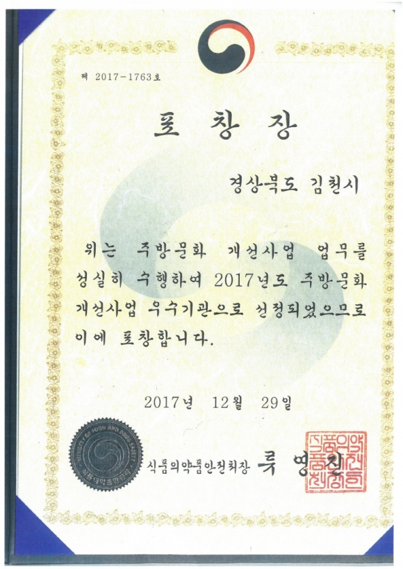 김천시, 음식문화개선 및 주방문화개선 사업 선도적 역할!!