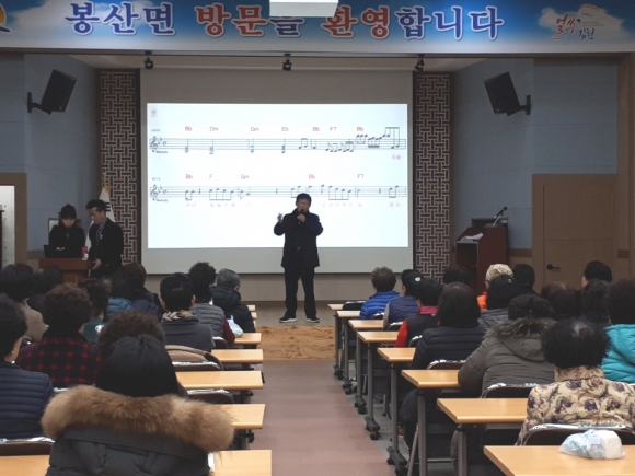 이번 가요교실은 봉산면 농촌중심지활성화사업의 일환으로 추진되는 사업으로 주민들의 복리증진 및 삶의 질 향상을 위한 것으로, 지난해 준공한 다목적 강당인 봉황관에서 매주 노래교실과 무료 영화상영 등 각종 프로그램을 추진하고 있다.
