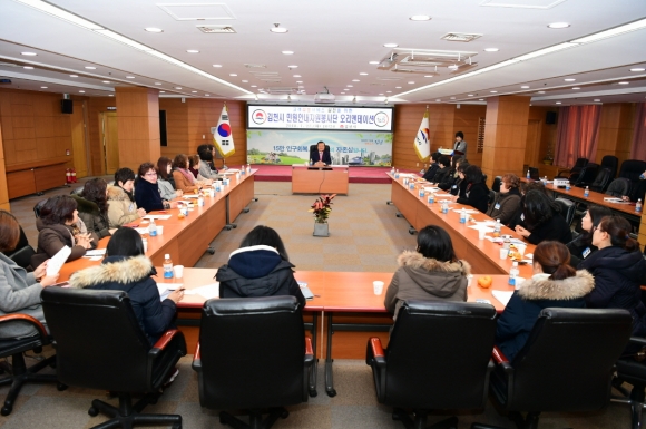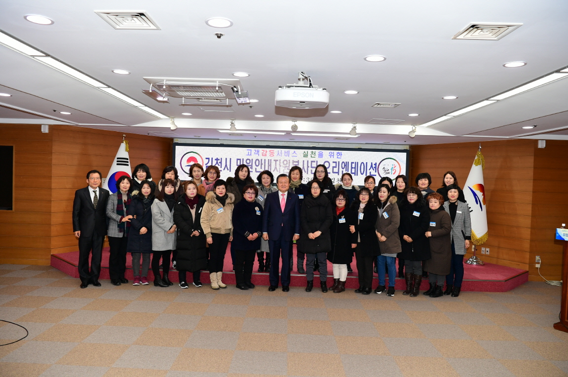 | 김천시(시장 박보생)는 지난 1월 23일 김천시청 2층 회의실에서 민원안내자원봉사자 23명과 김천시종합자원봉사센터(센터장 김미숙) 임직원들이 참석한 가운데 「2018 김천시 민원안내자원봉사단 오리엔테이션」을 개최했다.