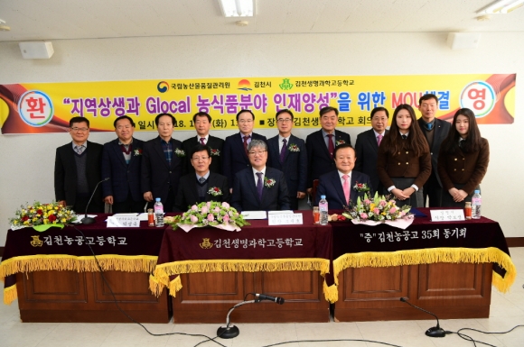 이날 협약식에는 국립농산물품질관리원 조재호 원장, 김천시 박보생 김천시장, 김천생명과학고등학교 박성욱 교장, 박성규 학교운영위원장, 백종록 前총동창회장, 학생대표 등이 참석했다