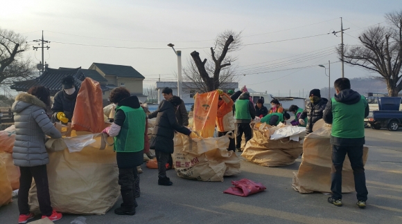 먼저 마을별로 새마을지도자 및 부녀회장이 주도하여 각 가정과 마을안길 등에 방치되어 있는 플라스틱 농약병 및 농약 봉지류 등 영농폐기물 자체 수거활동을 3일동안 실시하였다. 그리고 31일 면사무소 전정에서 한데 모아 분류하고 정리하는 작업을 하였으며, 이렇게 수거된 양은 톤백 14박스에 달했다.